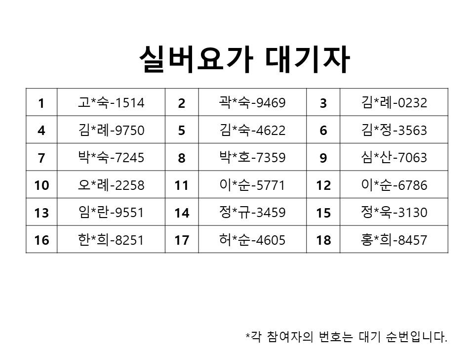 - 실버요가 : 총 34명 중 15명 추첨, 19명 대기