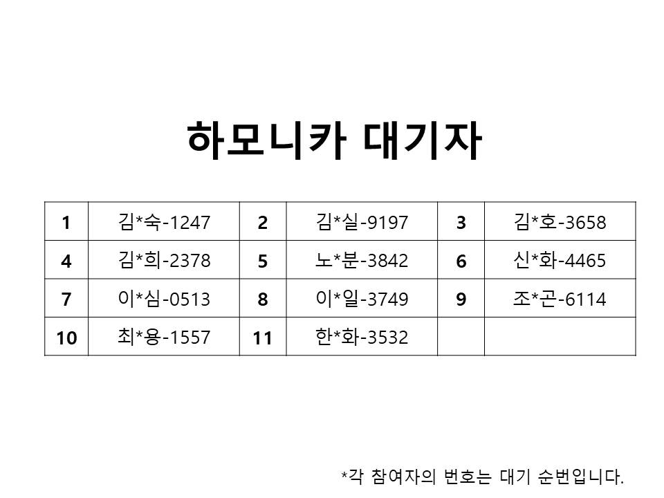 - 하모니카 : 총 33명 중 22명 추첨, 11명 대기