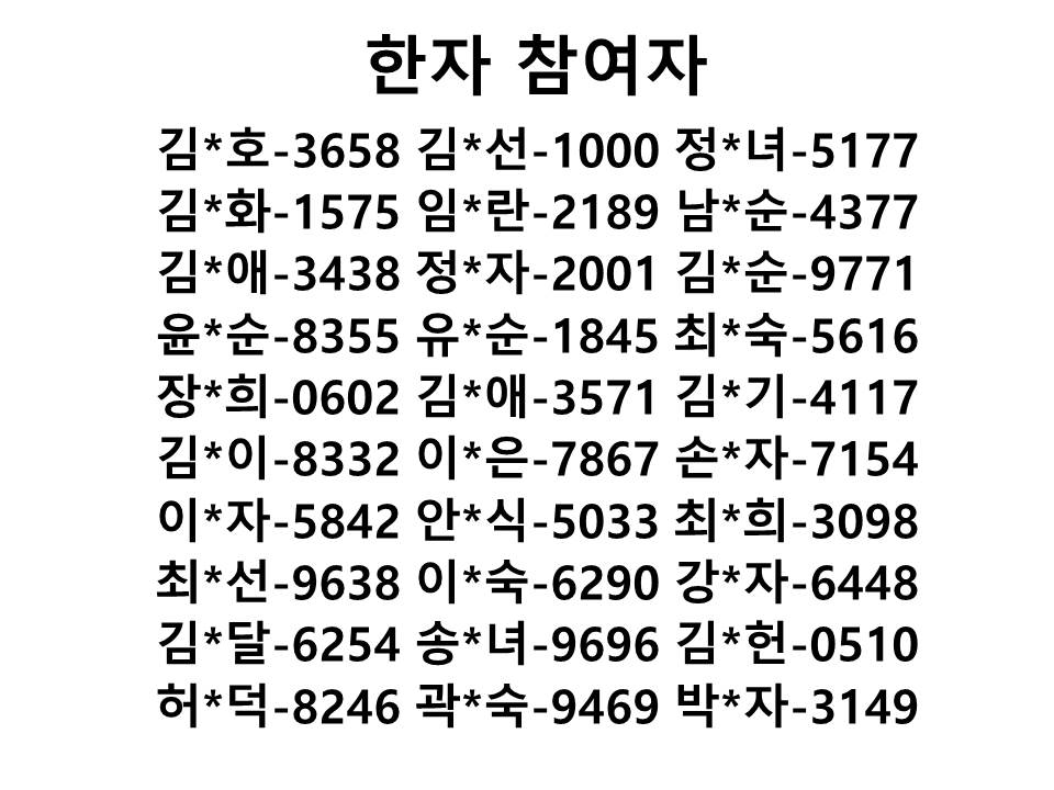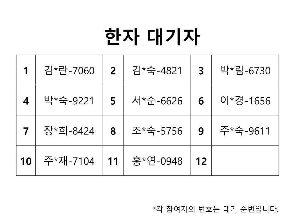 - 한자 : 총 41명 중 30명 추첨, 11명 대기