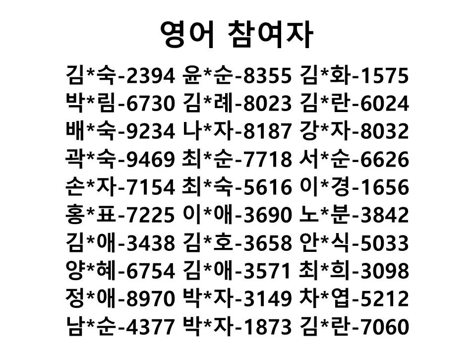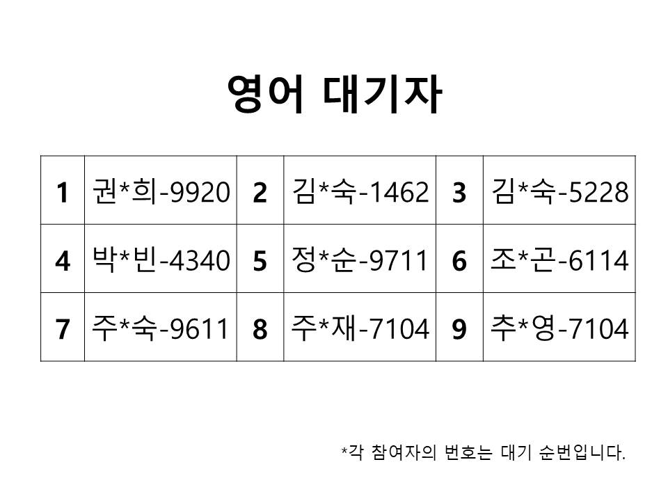 - 영어 : 총 39명 중 30명 추첨, 9명 대기