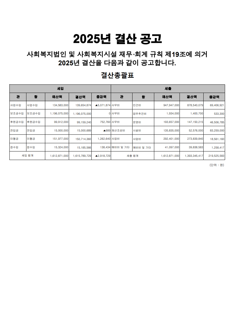 [공지] 2025년 결산 공고