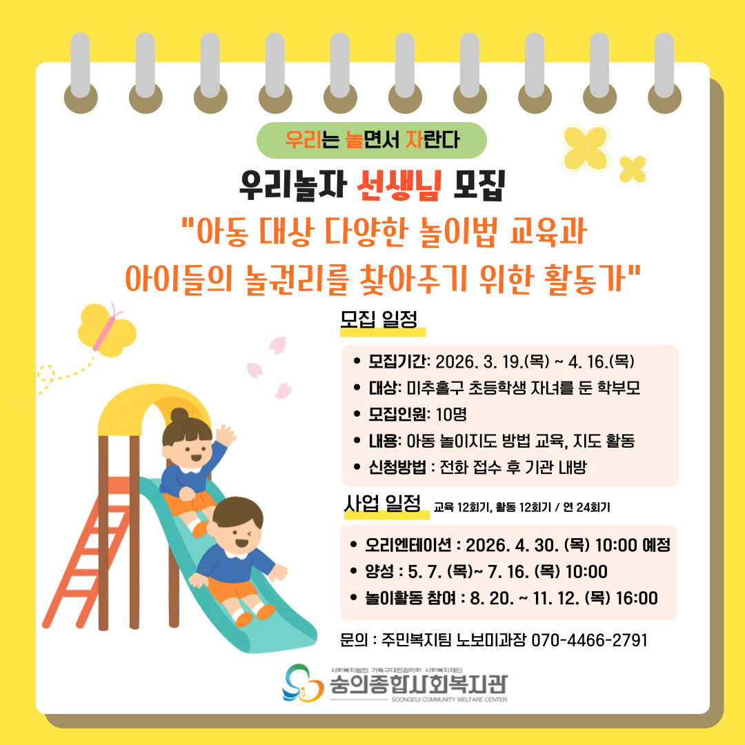 공지 [모집] 우리놀자 놀이 선생님 모집