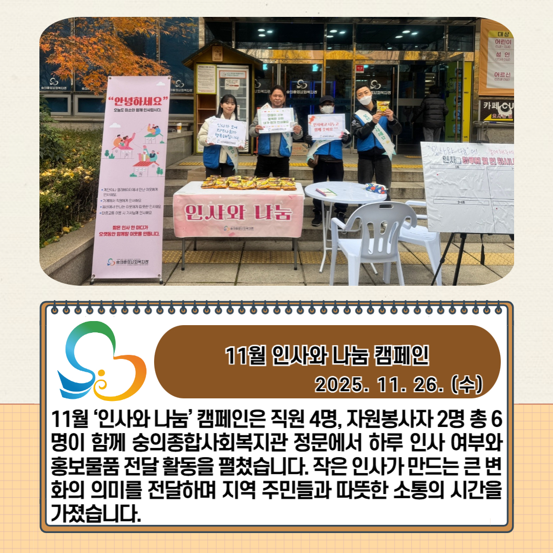 안녕하세요! 복지관 소식을 한눈에 볼 수 있는 ‘숭의레터’입니다!