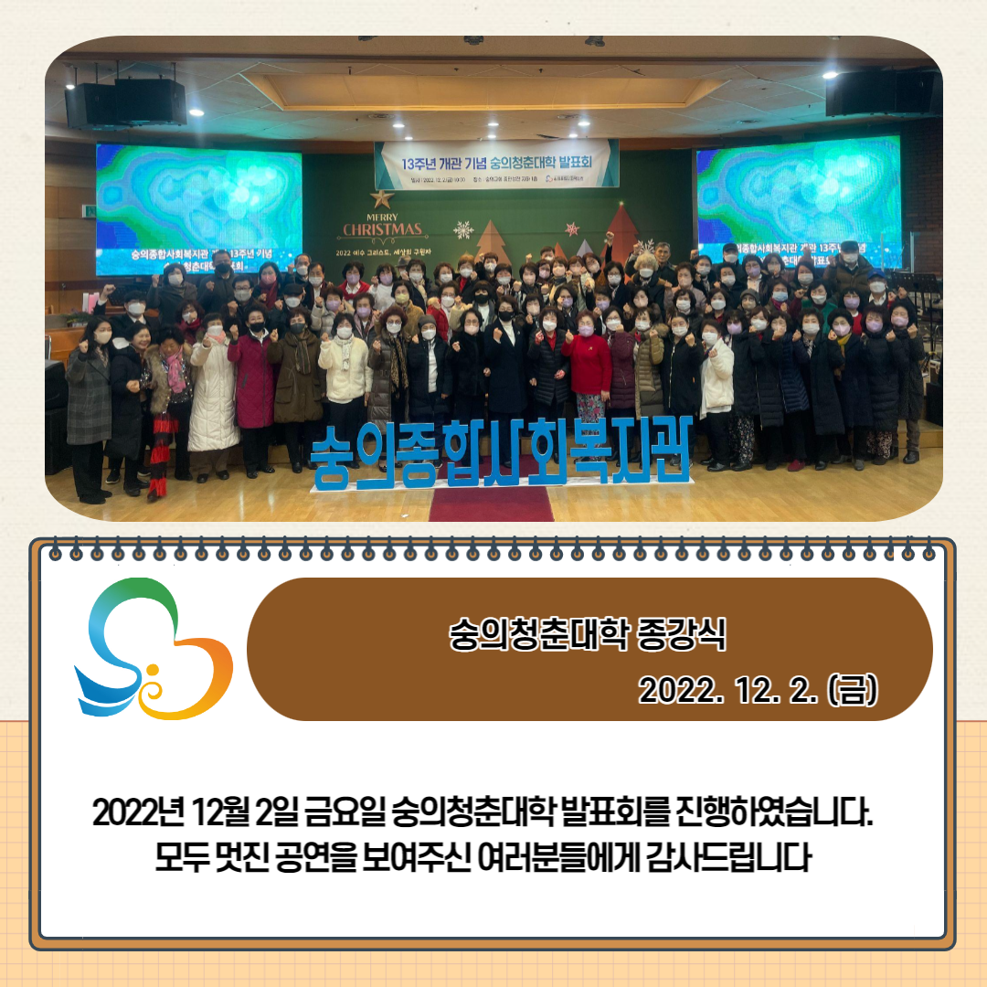 안녕하세요! 복지관 소식을 한눈에 볼 수 있는 ‘숭의레터’입니다!