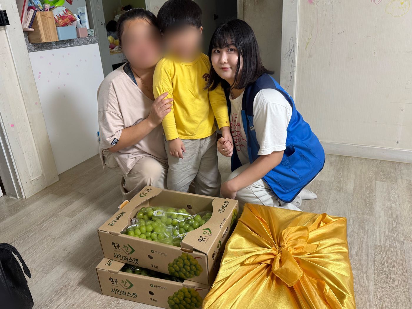 지난 9/25(목)에는 추석을 맞아 9가정에 샤인머스켓 세트와 혼합과일세트(배, 사과)를 전달하며