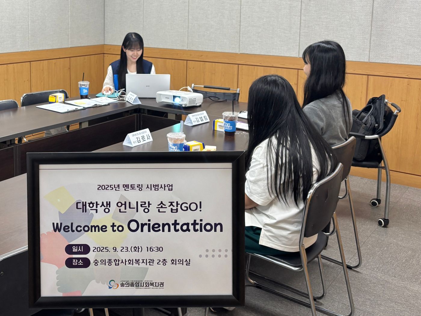 멘토링 시범사업 '대학생 언니랑 손잡GO!' 오리엔테이션을 진행하였습니다.
