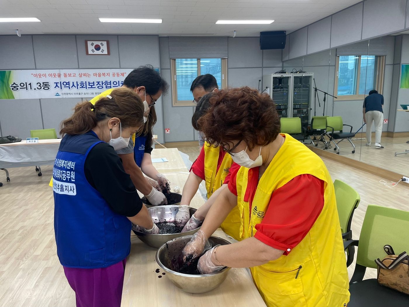 지역사회 내 복지사각지대를 발굴하고, 이웃들에게 관심을 널리주기 위해 숭의1.3동 지역사회보장협의체 위원들이 행정복지센터에 모여서