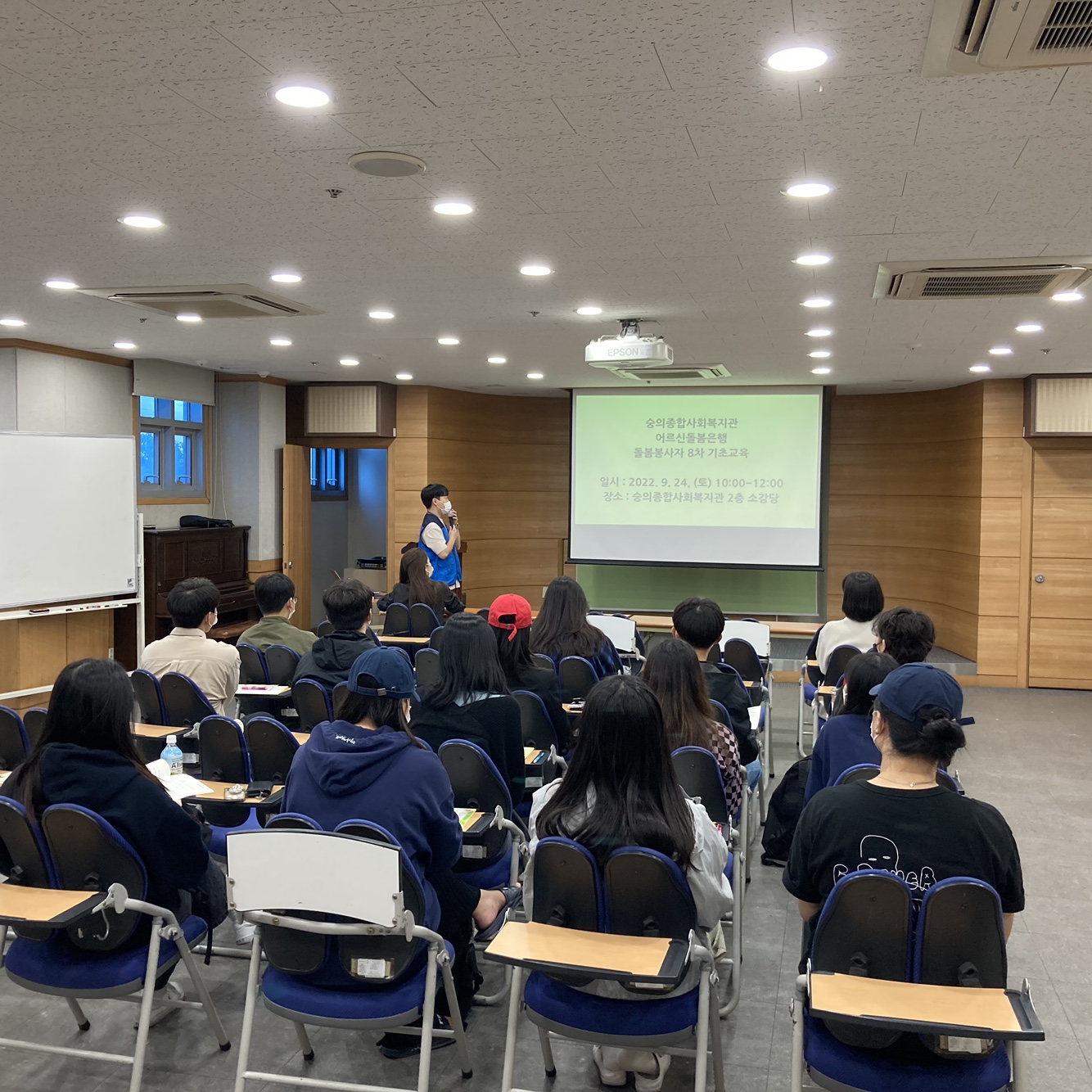 2022년 9월 23일(금) 14:00~16:00, 24일(토) 10:00~12:00 양일 간 숭의종합사회복지관 소강당에서 돌봄봉사자 7~8차 기초교육을 실시했습니다.