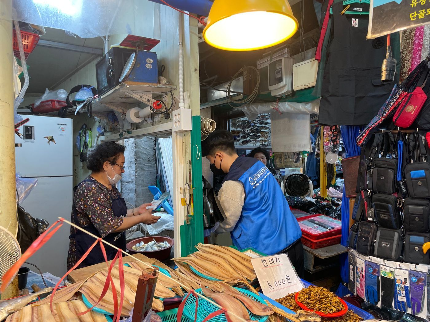 숭의또바기봉사단이 용현시장에서 인사와 나눔 캠페인을 진행하였습니다.